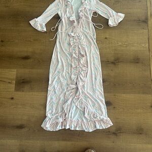 Experience comfort and elegance with this pink ruffled sleepwear set. Perfect for a cozy night in.