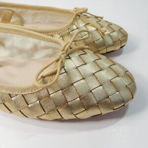 LOEFFLER RANDALL Leonie Mary Jane Ballet Flat Size 7 Gold Woven Leather NEW $275