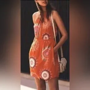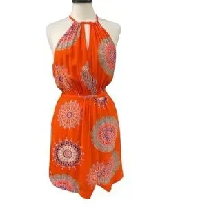 Anthropologie Floreat Livia Floral Halter Dress SZ 8 Orange