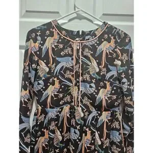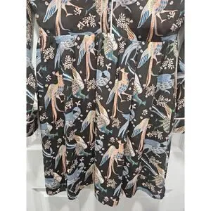 Elevate your wardrobe with this stunning LOFT women’s petite dress, featuring a whimsical peacock snow bird print in rich jewel tones. Perfect for work, brunch, or a casual day out, this dress combines timeless elegance with playful charm.