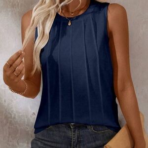 This elegant navy sleeveless top is perfect for any occasion. Its sleek design and rich color make it a versatile addition to your wardrobe.