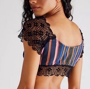 CLEARANCE! NWOT Free People Aruba Crochet Multicolor Crop Top, Cotton Modal