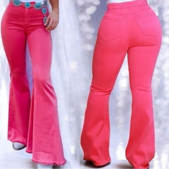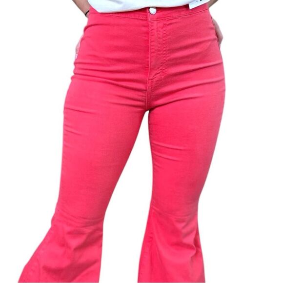 HomeFolk/L&B Fuchsia Pink High Rise Flare Jeans NEW