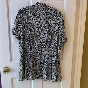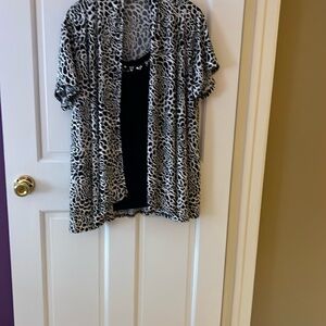Stylish black and white top and pants set. Comfortable and light material polyester and spandex. Comfortable fit.