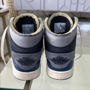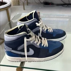 Step up your style with these sleek Nike blue and gray high-top sneakers. Perfect for any casual outing, these shoes offer both comfort and a modern look. Lightly used but in good condition.