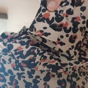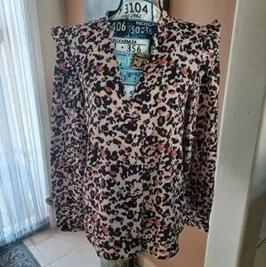 This elegant SHEIN blouse features a striking black, tan and brown color palette with ruffled detailing, adding a touch of sophistication to any outfit. The lightweight fabric ensures comfort and style, making it a versatile addition to your wardrobe.