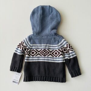 Carter’s 9 Months Baby Boy Knit Hooded Zip Cardigan Sweater Fair Isle NWT