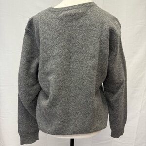 Stay cozy and timelessly stylish with this Polo by Ralph Lauren gray lambswool sweater in men’s size XL. Made from 100% lambswool, this luxuriously soft sweater features a classic v-neckline, ribbed cuffs and hem, and the iconic navy embroidered Polo logo on the chest. A versatile cold-weather essential, it pairs effortlessly with jeans, trousers, or layered over a collared shirt. Made in Hong Kong from premium quality wool for warmth and comfort.