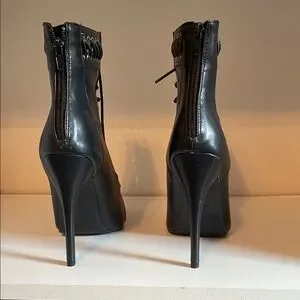 Step out in style with these elegant black lace-up ankle boots. Perfect for any occasion, these boots offer both comfort and sophistication.
