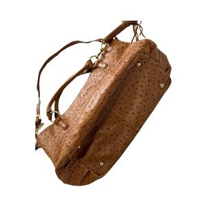 Vintage GILI ostrich leather extra large shoulder or tote bag - embossed tan