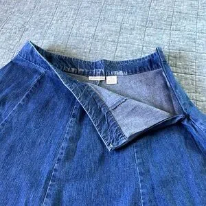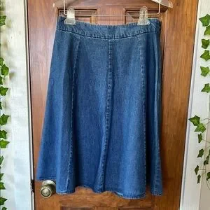 ST JOHNS BAY 100% Cotton Lightweight Denim Cottage Blue A Line Midi Skirt | 8