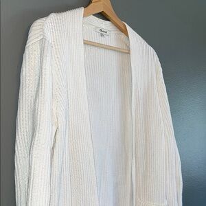 Stay cozy and stylish with this elegant white open-front cardigan. Perfect for layering, this sweater adds a touch of sophistication to any outfit.