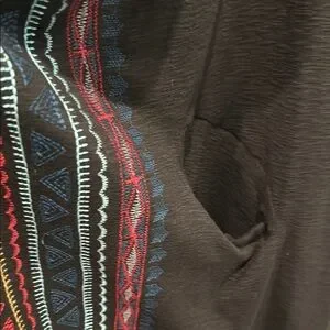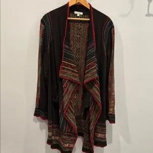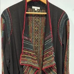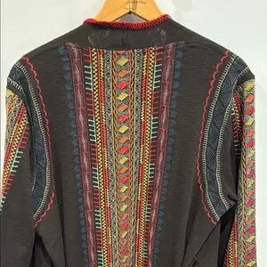 Stunning piece. Black base with multicolor stitching. Pockets. Belt. Great condition.