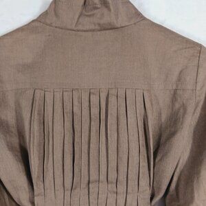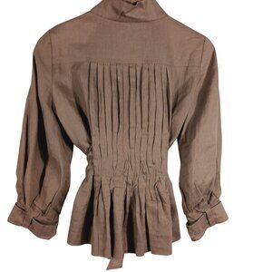 Zara Woman Tan/Brown Linen Jacket Pleated Back, Size Medium, Snap Front. This pre-owned jacket is in very good condition and features: