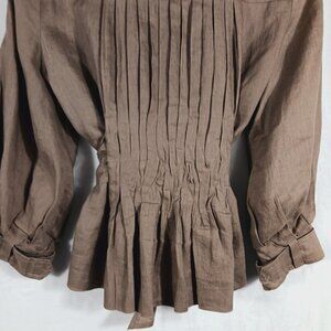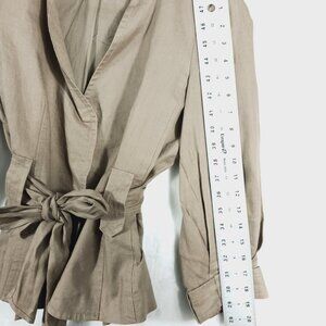 Zara Woman Tan/Brown Linen Jacket Pleated Back, Tie Waist Sz MED Earthy Neutral
