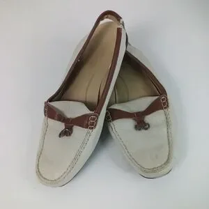 Trotters Cream and Brown Leather Flats Slingback Mules 8.5 Wide