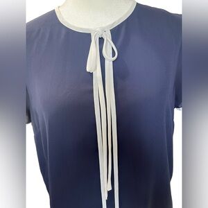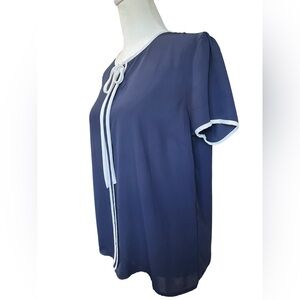 Forever 21 Woman’s Blue and White Short Sleeve Blouse Top - w/bow - M