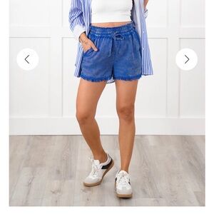 Zenana Mineral Washed Frayed Bottom Tencel Shorts! NWT! Size L
