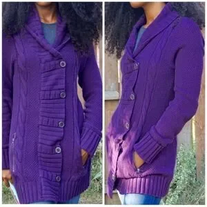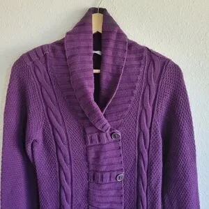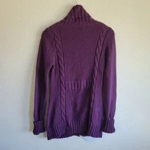 ATHLETA Purple Cable Knit Button Dowm Sweater Jacket Womens Size S