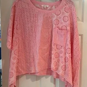 Oli & Hali Women's Pink Eyelet Top NWOT oversized