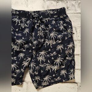 Massive Men's Navy Palm Tree Print Casual Cotton Shorts