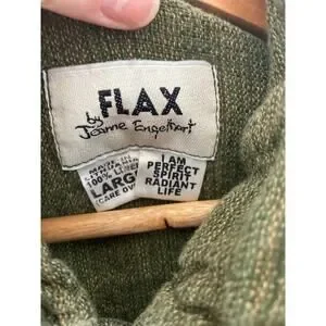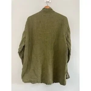 Flax by Jeanne Engelhart Women's large long sleeve green 100% linen snap shirt