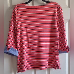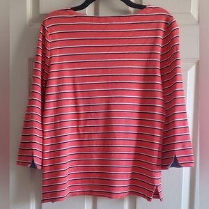 Nautica Women's Striped Coral, Black White Spripes, Blue Accents. Size L