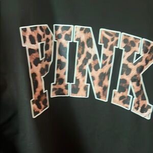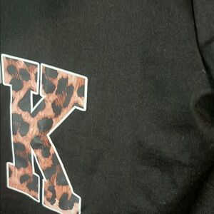 Stylish black t-shirt featuring a bold leopard print logo. NWOT