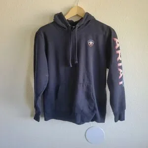 ARIAT REAL Hoodie Womens Navy Blue/Serape Logo Womens Size Small