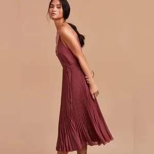Beaune Accordion Pleated Midi Wrap Dress in Apple Butter Colour