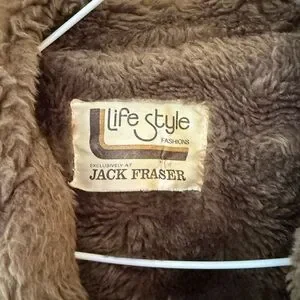 Stay warm and stylish with the Men's Brown Shearling Coat. This coat features a luxurious brown color with a cozy shearling lining, perfect for cold weather. Please note rip on left size lower quadrant. (Pictures) and missing lower button and miss colored button.