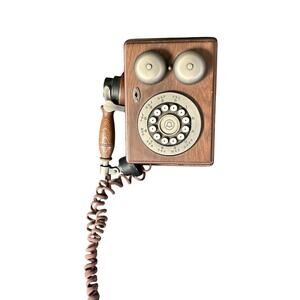 Experience the charm of the past with this vintage oak wood AT&T wall phone. Crafted in the United States, this classic piece is a testament to the timeless design and quality craftsmanship of Western Electric. Its push-button dial adds a touch of nostalgia to any room, making it a perfect addition for collectors or those who appreciate the style of retro electronics.