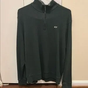 Stay stylish and comfortable with the Vineyard Vines Men's Green Half-Zip Sweater. Perfect for any casual occasion, this sweater offers a sleek look with its rich green color.