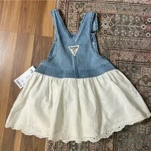 Oshkosh B’Gosh Girls Overall Jean White Cotton Eyelet Dress NWT Size 3T