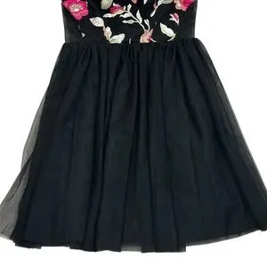 Teeze Me Spaghetti Strap Sweetheart Embroidered Top Side Illusion Dress Size 1/2