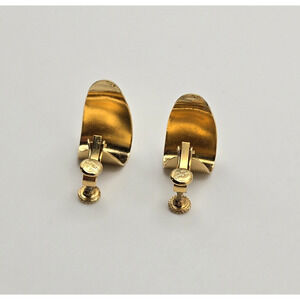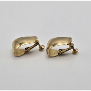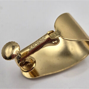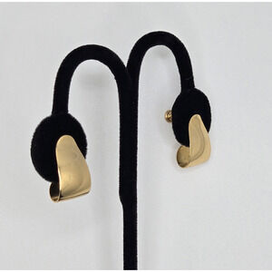 Vintage Napier Earrings Goldtone J Hoop Shiny Screwbacks Midcentury Modern 1"