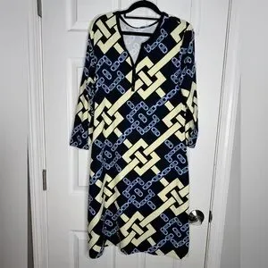 J. MCLAUGHLIN Catalina Chain Link Dress Navy Cream Size L