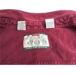 This Prolen sleeveless denim button shirt in men’s XL is a vintage gem made from 100% cotton and crafted in Taiwan. Featuring a rich faded red hue and a rugged raw cut-off sleeve style, it’s perfect for layering or rocking solo during warmer days.