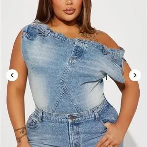 Fashion Nova jumper showcases a classic blue denim hue with a relaxed fit, ideal for everyday wear. The medium-weight fabric offers both durability and comfort, while the light blue wash provides a timeless appeal. (18/20)