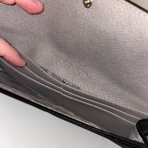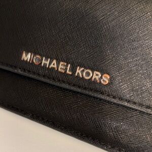 Sleek black wallet by Michael Kors. Elegant and versatile. Gently worn. Tarnished front letters and zipper as seen by the photos. Other wise in great condition no rips or tears.