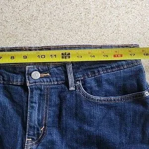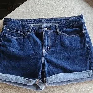 Levi's Cuffed Jean Short Size 32- see pics for measurements, 99% Cotton/ 1% Elastane, 5 Pocket Style, Button/Zip Front Closure, Dark Wash, Excellent Pre-Loved Condition.