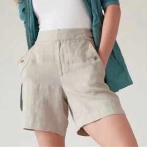 Comfortable linen shorts with natural & elastic waistband with adjustable straps. Ideal for casual outings.