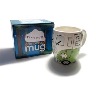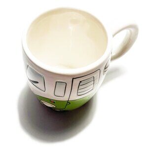 NEW 16 oz Green Retro Hand Painted Hippie Camper Peace Van Ceramic Porcelain Mug