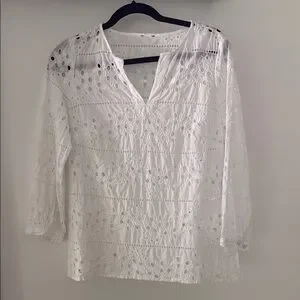 Chico’s Women's White Eyelet Embroidered Blouse 100% Cotton Small