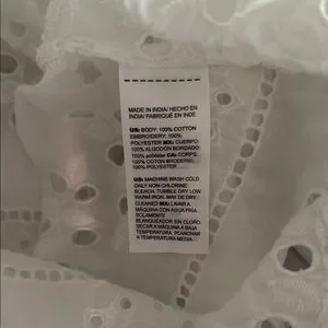 Elegant white eyelet blouse top perfect for any spring or summer occasion. Features intricate embroidered detailing for a stylish look. 100% cotton, made in India