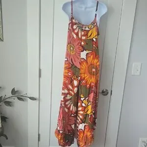 MSK Orange and Brown Floral Asymmetrical High-Low Romper