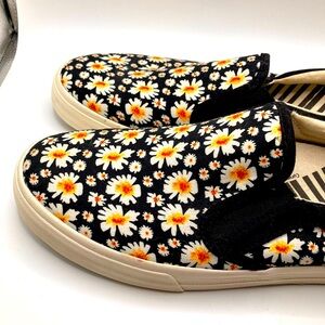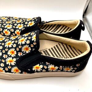 Taos Black Daisy Floral Slip-On Sneakers womens size 9