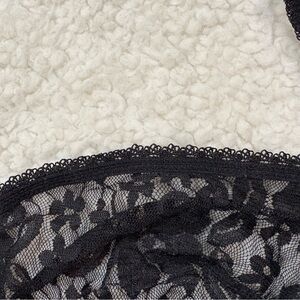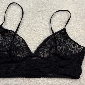This elegant black lace bralette offers a perfect blend of comfort and style. Ideal for everyday wear, it features intricate lace detailing for a sophisticated look. Size tag not in bra | possibly medium