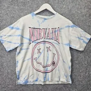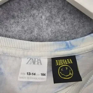 NIRVANA Tie Dye T Shirt Kids 14 White Blue Smiley Face Band Tee Grunge Y2K ZARA