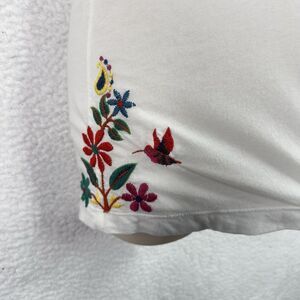 Johnny Was T-Shirt Floral Embroidered White S 100% Cotton Short Sleeve Boho Chic